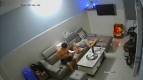 黑客破解家庭网络摄像头监控偷拍❤️晚饭后不久夫妻在客厅沙发贵妃躺上啪啪